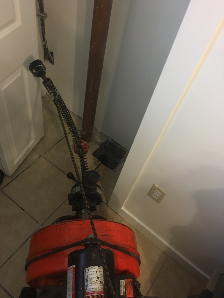 Clear drain. Plumber required to clear stack and drain to city property line.